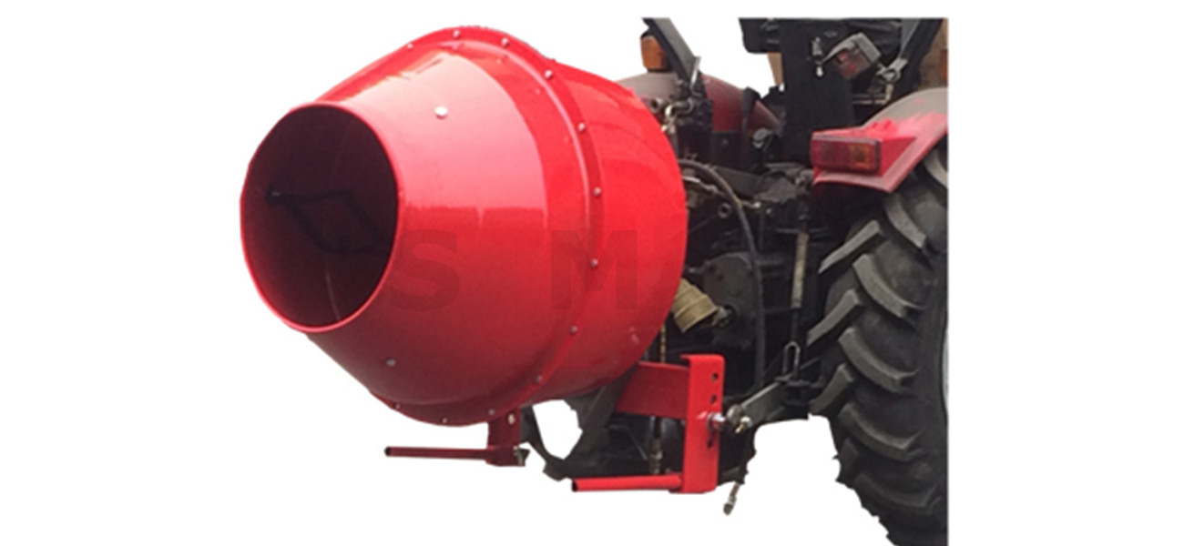Heavy duty, tractor mounted concrete mixer. Suitable for CAT 1 three-point linkage tractors.