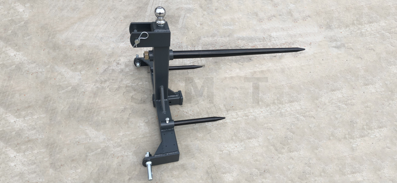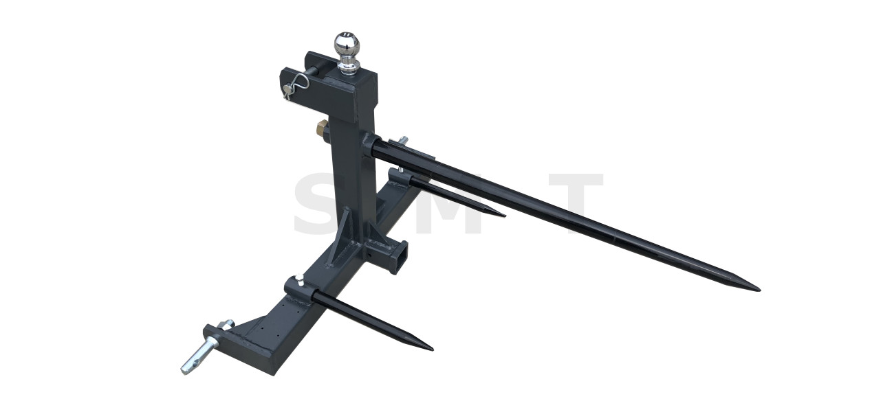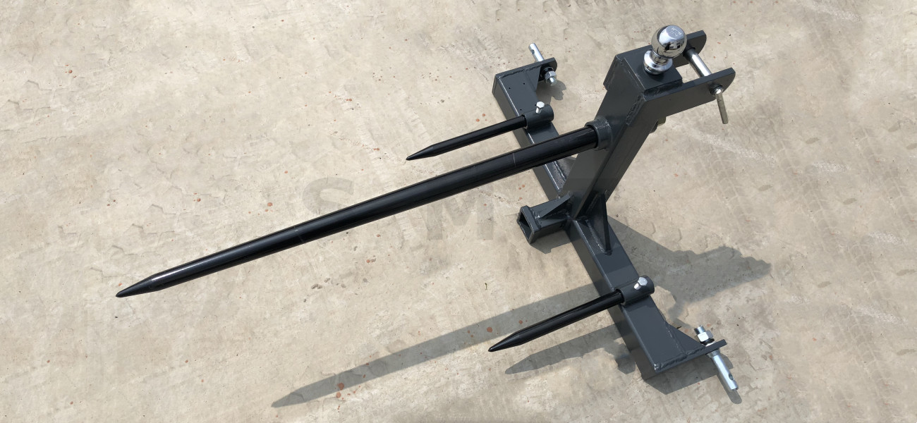 This three point bale spear replaces the broken hay fork on your farming equipment. It is a tapered steel spear and is designed for hard center bales. It has a center spear and two short spears. It will fit category 1 hitch pins. Please see the detailed specifications below.